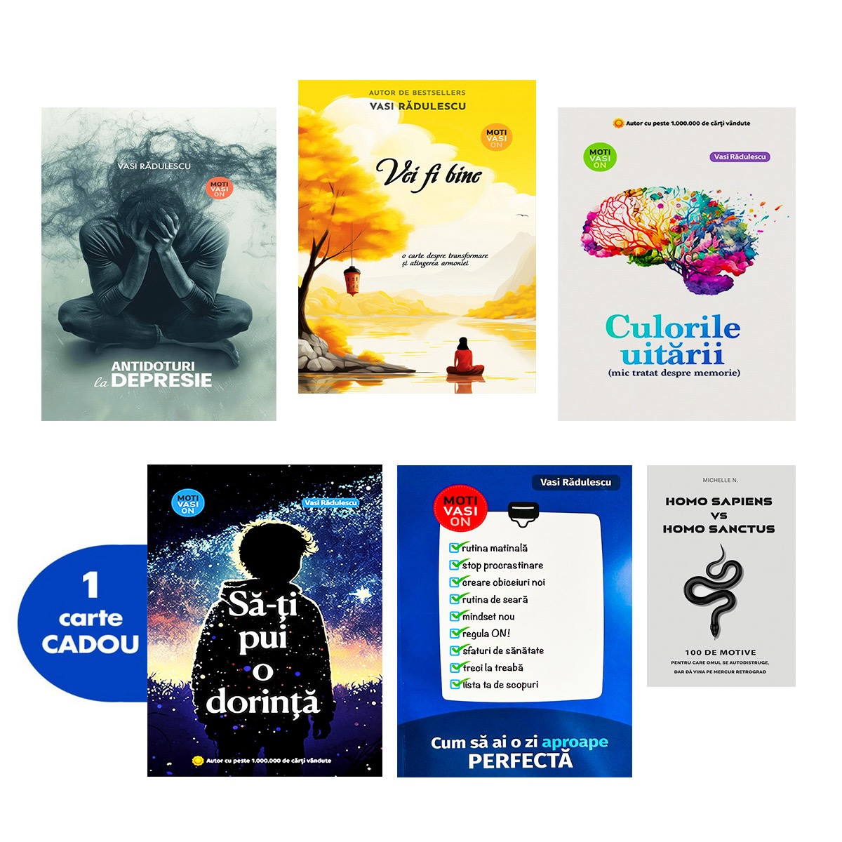 M-am luptat cu depresia ani de zile și cum, retrospectiv, îmi dau seama cât de greu mi-a fost. Și cum căutat cu disperare răspunsuri, soluții, orice, numai să ajung să fiu iar bine cu mine. Am atins acest echilibru și am decis să scriu sincer, vulnerabil, despre această parte a vieții mele. Am scris ca un soi de terapie, în încercarea de a mă vindeca, dar a ajuta și mulți alți oameni care se prăbușesc, se fac bucăți, nu mai găsesc nicio bucurie în viață. Cărțile acestea sunt un suport veritabil, dincolo de experiența personală, au și multe explicații și sfaturi pentru a te înțelege mai bine, a avea grijă de axa corp, minte, suflet, atât de importantă. – Vasi Rădulescu