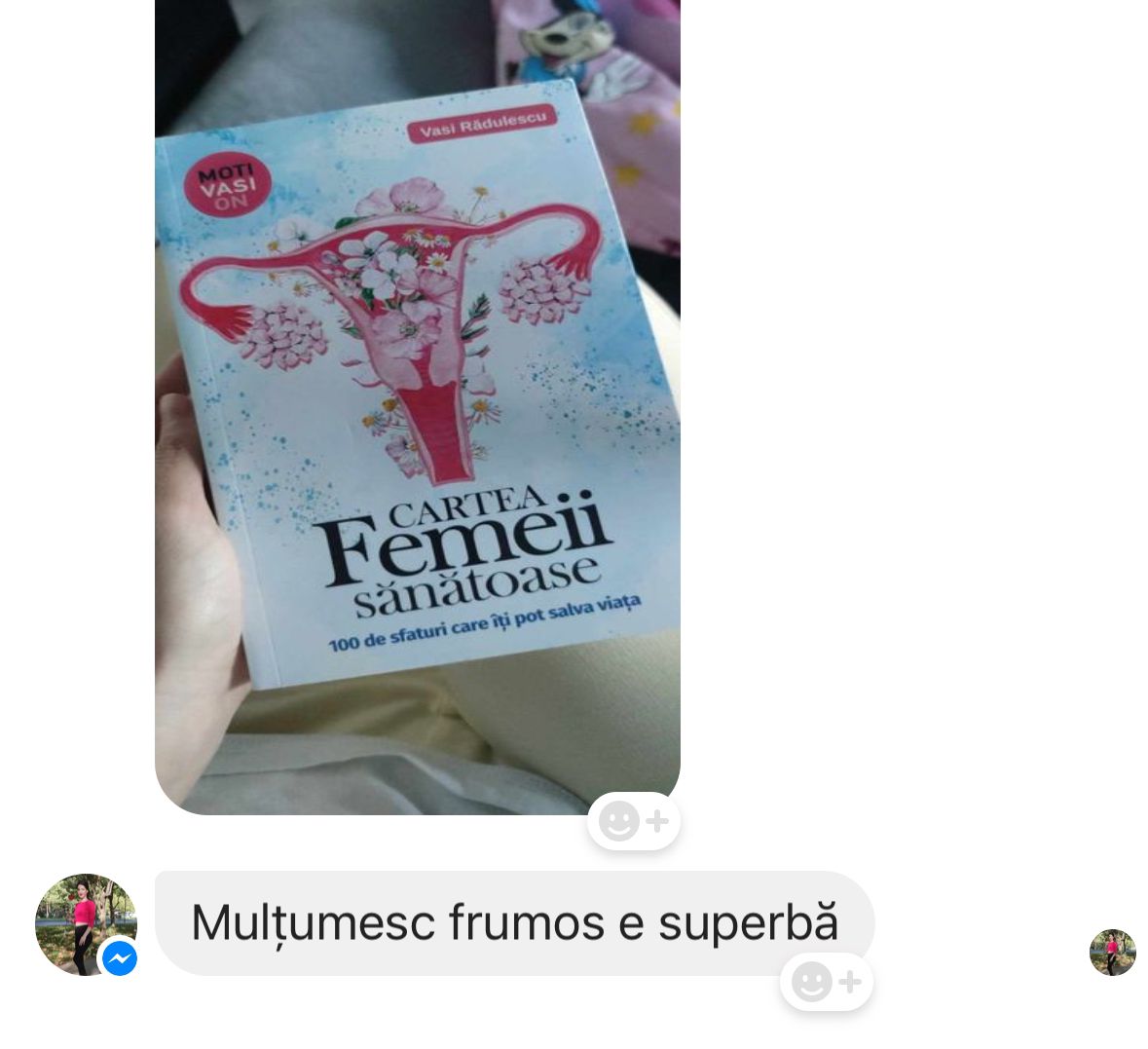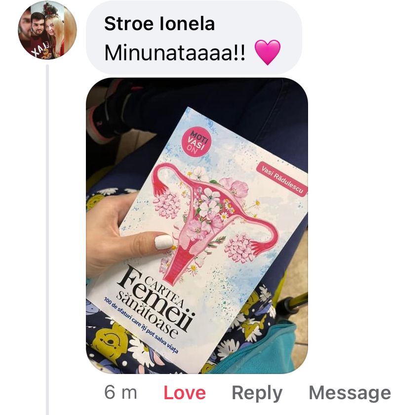 O carte foarte buna! Mi-a placut super mult si o recomand tuturor femeilor, chiar si adolescentelor! Am citit toate cartile domnului doctor Vasi Radulescu, minunate!