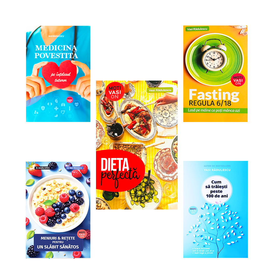 Am ajutat prin consultații peste 10.000 de oameni, cu rezultate extraordinare. Toate sfaturile au fost strânse și oferite acum în aceste cărți care îți explică, pas cu pas, tot ce trebuie să faci pentru a ajunge la o greutate normală, a adopta cele mai bune obiceiuri, a implementa cele mai eficiente sfaturi. Pornind de la creier, corp, sistemele nervoase, hormonale, optimizăm tot. – dr. Vasi Rădulescu